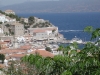 behind a wonderful horseshoe bay full of boats of every kind, little